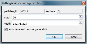 该对话框显示在上半部分,其中显示所选折线/路径的总长度以及使用当前设置创建的正交剖面的数量。