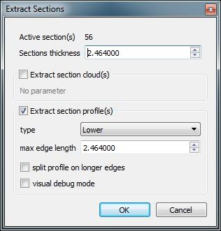 一旦一个或多个部分被编辑/导入/生成,用户可以要求CloudCompare提取相应的云切片和/或生成多边形剖面。单击“ 图标以显示以下对话框:
