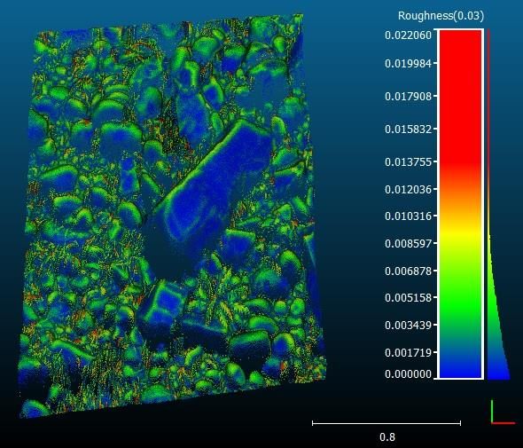 粗糙度估算非常简单:对于每个点,其“粗糙度”值等于该点与基于其最近邻计算的最佳拟合平面之间的距离。