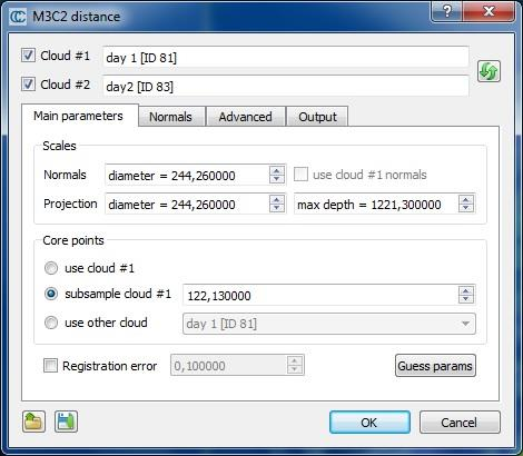 选择两个要比较的云,然后调用“插件> M3C2 Distance”方法。