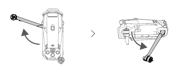 • 开启飞行器电源之前,确保云台保护罩已移除、前后机臂均已展开,以免影响飞行器自检。