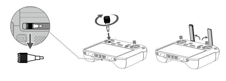 取出位于摇杆收纳槽的摇杆,安装至遥控器。