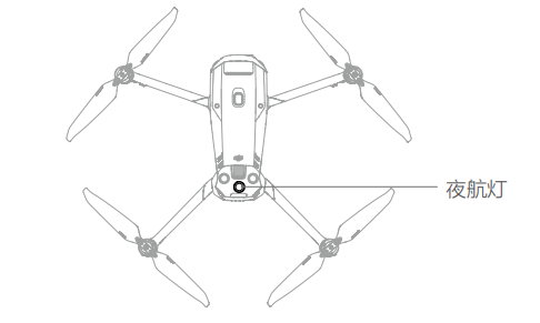 飞行器顶部配备夜航灯,便于在夜间飞行时识别飞行器。可在 DJI Pilot 2 App 中手动开启或关闭夜航灯。