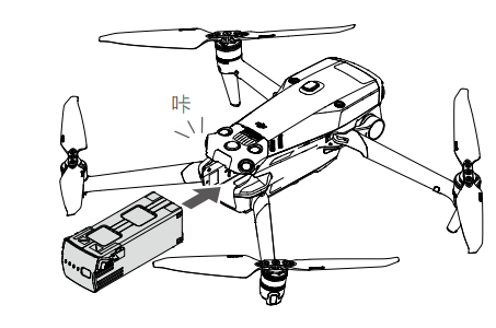 按图示方向正确安装电池。注意将电池卡扣锁紧到位。推入时应有“咔”一声。