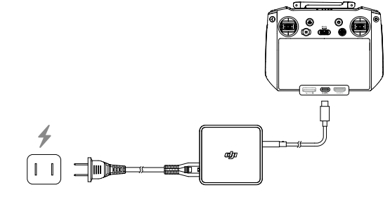 连接遥控器 USB-C 接口与标配电源适配器充电。