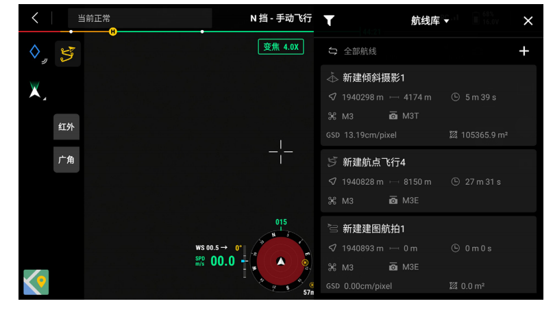 - 航线:点击进入航线库,在此可以创建航线任务、浏览所有航线任务等。