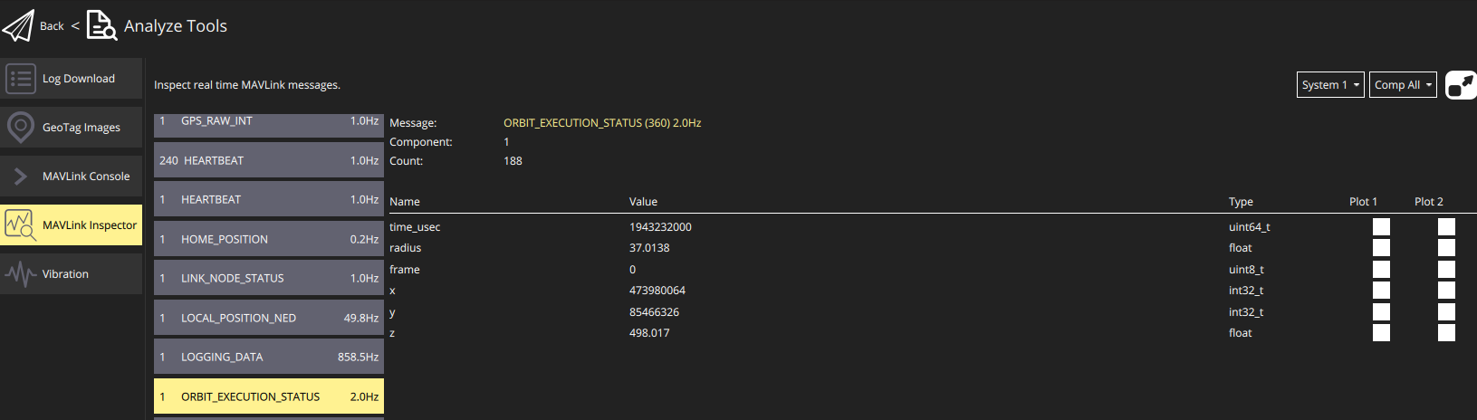 通过QGC后台查看原始ORBIT_EXECUTION_STATUS消息